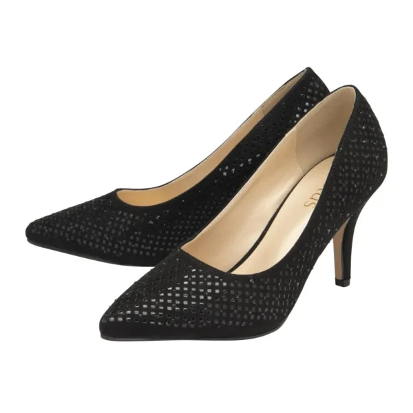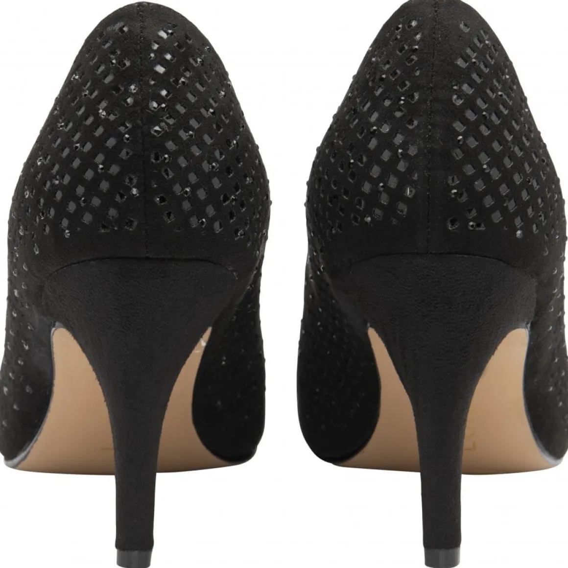 Introducing the Lotus Kayla Court Shoe, a perfect blend of timeless design and modern detailing. Ideal for those special occasions, this shoe features a stunning black and diamante upper, complete with intricate laser cut out detailing. The 9cm stiletto heel adds just the right amount of height, making it an excellent choice for any event requiring a touch of class.