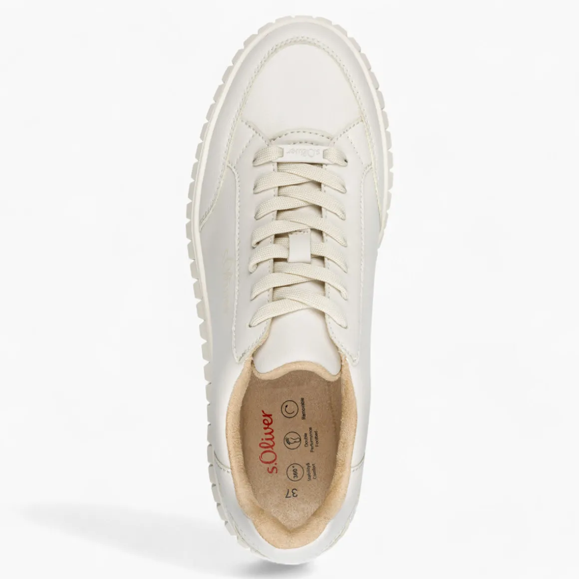 Elevate your everyday style with this trendy vegan runner from s.Oliver. Featuring a sleek, off-white nude design, a comfortable padded interior, and a modern sole unit, this shoe combines elegance and comfort for a luxurious yet ethical choice.
